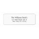 Elegante weiße Rücksendeadresse vorgefüllte Etiketten für Umschläge mit schwarzem Text.
