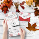 Diese elegante Hochzeit im Herbst lädt zu einer modernen Herbsthochzeit ein. Das schlichte Design besteht aus roten Ahorn-Blätter mit eleganter Schwarz-Rot-Typografie auf weißem Hintergrund.