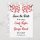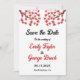 Diese elegante Hochzeit im Herbst Save the Date lädt zu einer modernen Herbsthochzeit ein. Das schlichte Design besteht aus roten Ahorn-Blätter mit eleganter Schwarz-Rot-Typografie auf weißem Hintergrund.