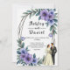Diese elegante Wasserfarbenhochzeit lädt zu einer modernen Hochzeit ein. Das romantische Design zeichnet sich durch ein elegantes Aquarellbild aus, das mit einer Braut- und Bräutigrade sowie einer schwarzen Kalligraphie auf weißem Hintergrund besticht.