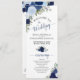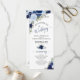 Dieses wunderschöne Hochzeitsprogramm besticht durch ein elegantes bohenhaftes Design mit handgemalten Rose in staubblauen, marokkanischen und indigofarbenen Tönen auf weißem Hintergrund. Die Titel sind in extravaganter Skriptkalligraphie geschrieben, und es gibt Platz für Ihre Zeremonie und Hochzeitsfeier Details, sowie ein kurzes Dankeschön für Ihren Gast. Ein wunderbarer Weg, um Ihre Freunde und Familie zu Ihrer Hochzeitsfeier zu begrüßen.