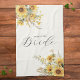Dekorieren Sie Ihre Küche mit unserem eleganten rustikalen Watercolor Sonnenblumen Blumenbräunchen Küchentuch. Mit wunderschöner Aquarell-Sonnenblumenillustrierung und bearbeitbaren Texten, die individuell angepasst werden können. Geeignet als Gastgeschenk Hochzeit und Geschenk für Braut- und Brautmädchen.