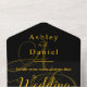 Dieses elegante Schwarz-Gold-Hochzeitsangebot eignet sich perfekt für eine moderne Hochzeit, das schlichte Design zeichnet sich durch elegante goldene Kalligraphie auf schwarzem Hintergrund aus.
