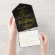 Elegante schicke Schwarz-Gold-Monogramm-Hochzeit All In One Einladung