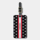 Elegantes schwarz rot und silber Gepäckanhänger. Personalisierter Name auf Silberfarbe mit roten Streifen und Diamanten auf schwarzem Hintergrund.