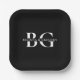 Elegante Schwarz-Weiß-Monogramm-Initialen Hochzeit Pappteller