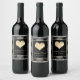 Elegantes, schwarz-weiß gestreiftes Weinetikett mit einem goldbeigen Herz für die klassische Geburtstagsparty und schicke Feiern.