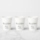 Elegante schwarz-weiße Skriptnamen Datum der Hochzeit Papier Cups. Mit eleganten zarten Herzen Detail. Karo der Erholung der Auflistung für die Abstimmung der Elemente.