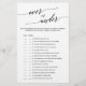 Diese elegante schwarze Kalligraphie über oder unter dem Spiel ist perfekt für ein einfaches Brautparty. Das neutrale Design verfügt über eine minimalistische Spielkarte, die mit romantischer und skurriler Typografie dekoriert ist. Personalisieren Sie das Spiel mit Ihren eigenen Aussagen!