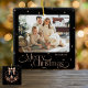 Elegante Schwarz-Rose Gold Weihnachtsschmuck Foto. Feiern Sie die Saison mit Eleganz! Dieser Weihnachtsschmuck besticht durch eine luxuriöse Rose mit Gold und schwarzem Ornament, die eine Touch der Eleganz verleihen. Ihr liebstes Foto ist wunderschönes Set unter den goldenen Sternen der Rose, während Ihr Familienname deutlich über "Frohe Weihnachten" angezeigt wird, was dieses Ornament zu einem personalisierten Sake für die Ferien macht.