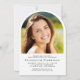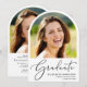 Arch-förmige Abschlussfeier mit dem Foto des Absolventen, "Graduate" in einer eleganten Schrift, und ihren Namen, das Klassenjahr und die Schule oder Universität in einfacher, moderner Typografie. Fügen Sie ein zweites Foto auf der Rückseite hinzu und personalisieren Sie Ihre Party-Details.