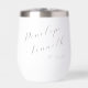 Diese zeitgenössische Hochzeit Stemless Thermal Wine Tumbler zeichnet sich durch eine minimalistische horizontale Komposition und die Braut- und Bräutigamen in einer stilvollen Skriptkalligraphie in schwarz aus.