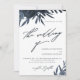 Romantische blaue Blumen mit eleganter Kalligrafie zeitgenössische Hochzeitseinladung mit weißem Kartenrücken.