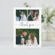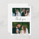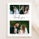 Elegante Hochzeitskarte mit Dankeschön in einer stilvollen Schrift, eine Collage von 3 Hochzeitstag Fotos und Ihre Vornamen und Hochzeitsdatum verbunden mit einem Herz. Auf der Rückseite personalisieren Sie Ihre Danksagung und fügen Sie Ihre Namen in ein signaturähnliches Skript.