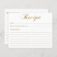 Diese elegante, goldene Rezeptur-Brautparty-Chipkarte eignet sich perfekt für jede Dusche. Es hat viele Linien für die Zutaten und der gesamte Rücken ist Linien für die Richtung. Bringen Sie eine oder zwei Rezeptionskarten mit jeder Duscheinladung ein, die die Gäste frage, ihr Lieblingsrezept(e) mit der Braut zu teilen. Sie werden überrascht sein, wie abwechslungsreich die Rezepte sein werden und wie dankbar die Braut sein wird, ein Set bewährter Rezepte für ihren geliebten Bräutigam zu haben.