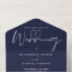 Elegante Script Monogram Navy Blue Wedding All In One Einladung