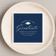 Elegante Abschluss-Servietten mit einer Graduationskappe mit dem Satz "Cheers to the Graduate" in einem weißen Kalligrafieschrift auf marinischem Hintergrund. Personalisieren Sie die Abschluss-Servietten der Marine mit dem Namen des Absolventen, Schulname und Abschluss Jahr. Die einfachen Abschluss-Servietten sind ideal für Ihr High School- oder Uni-Abschluss-Party.