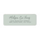 Chic, modern pastellgrün Hochzeitsrückadresse mit Ihren Namen in cremefarbener, eleganter Schrift-Kalligrafie. Fügen Sie einfach Ihren Namen und Ihre Adresse hinzu. Exklusiv für Sie entworfen von Happy Dolphin Studio. Wenn Sie Hilfe oder passende Produkte benötigen, kontaktieren Sie uns bitte über unseren Chat. Wir helfen Ihnen gerne, Ihre Hochzeit zum schönsten Tag zu machen!
