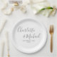 Elegante Signatur-Skript Graue und Weiße Hochzeit Pappteller
