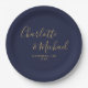 Elegante Signature Script Navy Blue Gold Hochzeit Pappteller