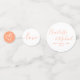 Elegante Signatur pfirsichfarbene Hochzeitstisch Konfetti personalisiert mit Signaturstil Namen, besondere Hochzeitsdatum und Nachricht. Entwickelt von Thisisnotme©