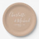 Elegante Signature Script Tan Taupe Hochzeit Pappteller