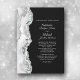 Diese Hochzeitseinladung verwendet eine hübsche Grenze von Imitaten agate in Tönen von Silber, Grau, Weiß, und eine Touch von Aqua Blue. Die Grenze fällt vor dem schwarzen Hintergrund rechts ab, der Ihren eigenen Text auch in Silber enthält. Die Rückseite der Einladung ist schwarz. Elegant, mit der richtigen Touch des Minimalismus.