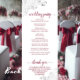 Dieses wunderschöne Hochzeitsprogramm zeichnet sich durch ein elegantes Design aus, das auf weißem Hintergrund mit knallroten Texten und silbergrauen Imitate-Folienrollen und Wirbel in den Ecken besticht. Die Titel sind in extravaganter Schrift-Kalligraphie geschrieben, und es gibt Platz für Ihre Zeremonie und Hochzeitsfeier Details, sowie ein kurzes Dankeschön für Ihre Gäste. Ein wunderbarer Weg, um Ihre Freunde und Familie zu Ihrer Hochzeitsfeier zu begrüßen.