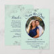 Diese wunderschönen Karten sind ein guter Weg, um Ihre Freunde und Familie wissen, Save the Date für Ihre kommende Hochzeit lassen. Sie zeichnen sich durch ein minzgrün- und marineblau-farbenes Design aus. Ihr Foto in einem ovalen Rahmen, umgeben von silbergrauen Spitzen-Frills und extravaganten Schriftzeichen mit Ihren Namen, Hochzeitstag und Ort. Die Rückseite hat eine niedliche "Bleistift uns in" Grafik mit Platz für eine Notiz, die eine Website, wo Ihre Gäste gehen können, um mehr Informationen.