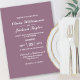 Eine elegante, staubige Rose mit weißem Text und einer Einladung zur Hochzeit.