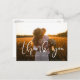 Mit dieser individuell gestaltbaren Fotokarte bedanken Sie sich für Ihre Anwesenheit und die schönen Geschenke. Fügen Sie einfach Ihr Lieblings-Hochzeitsbild hinzu, ändern Sie die Farben und schreiben Sie Ihre eigene Dankeschön-Nachricht.