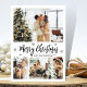 Elegante, moderne Schwarz und Weiß 4 Foto Collage Frohe Weihnachts Script Holiday Card. Dieses festliche, mimimalistische, whimsical vier (4) Foto Urlaubskarte Vorlage verfügt über eine hübsche Foto Collage, einige Schneeflocke und sagt Frohe Weihnachten! Der Grußtext "Frohe Weihnachten" ist in einem schönen schwarzen Schriftart mit Schriftzeichen auf weißem Hintergrund geschrieben. Auf der Rückseite mit der Grußtextanzeige auf weiß. Hübsche Grußkarte für Ihre Familie und Freunde in dieser Weihnachts- und Feiertagssaison.