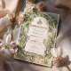 Cette superbe suite faire-part de mariage allie l'art islamique traditionnel à une touche moderne. L'avant de l'invitation présente un design Art Nouveau complexe et floral, dominé par des tons vert sauge, olive, crème et accentué par des éléments en feuille d'or qui lui donnent une atmosphère luxueuse. Le dos révèle une esthétique minimaliste avec un arrière - plan crème subtil, présentant un monogramme en vert sauge, olive et une pointe de jaune moutarde. Inspirée par la beauté intemporelle de la nature et la sophistication de la calligraphie islamique, cette invitation est idéale pour les couples qui souhaitent honorer leur patrimoine tout en célébrant leur union dans le style.