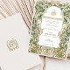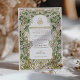 Cette superbe suite faire-part de mariage allie l'art islamique traditionnel à une touche moderne. L'avant de l'invitation présente un design Art Nouveau complexe et floral, dominé par des tons vert sauge, olive, crème et accentué par des éléments en feuille d'or qui lui donnent une atmosphère luxueuse. Le dos révèle une esthétique minimaliste avec un arrière - plan crème subtil, présentant un monogramme en vert sauge, olive et une pointe de jaune moutarde. Inspirée par la beauté intemporelle de la nature et la sophistication de la calligraphie islamique, cette invitation est idéale pour les couples qui souhaitent honorer leur patrimoine tout en célébrant leur union dans le style.
