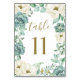 Machen Sie Ihr Thema auf Ihrem Empfang mit diesem Produkt, das einen Kranz von Aquarellblumen in Elfenbein & Champagner mit Sukkulenten, Eukalyptus und anderen Arten von Grünpflanzen. Dieses Design zeichnet sich auch durch elegante Typografie in gedruckten Bronze-/Braun- und Goldtexten aus.