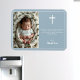 Eine elegante Taufe dusty Blue Design, dass Sie mit Ihren Details und Foto anpassen können.