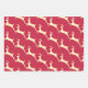 Drei elegante, festliche Weihnachtsblätter mit Gold Rentier, Schneeflocken und frohen Weihnachtssilber-Schrift. Creme, rot und taupe Hintergrundfarben geben Ihren Geschenken eine elegante, schlichte Oberfläche.