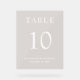 Elegante Taupe Wedding Reception Tischnummer Acrylschild