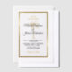 Mit dieser eleganten Einladung mit modernen Schriften, schwarzem und goldenem Text, inklusive einer künstlerischen Palme und Imitaten aus metallischem Goldrahmen, laden Sie Ihre Gäste ein, Ihren besonderen Tag zu feiern.