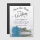 Diese wunderschönen Magnetkarten sind der perfekte Weg, um Ihre Freunde und Familie zu lass wissen, um Save the Date für Ihre kommende Hochzeit. Sie sind romantisch gestaltet und mit einem Single, der lang gestreift ist, in blau, türkisblau oder in azurfarbener Rose, die sich in einem Becken mit Wellen und Wellen widerspiegelt. Klassisch und elegant, das einfache Design beinhaltet die kalligraphische Schrift-Schrift.