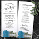 Dieses wunderschöne Hochzeitsprogramm besticht durch ein elegantes Design mit einem Single, der lang türkisblau, himmelblau oder azurfarbene Rose ist und im Wasser reflektiert. Die Titel sind in extravaganter Schrift-Kalligraphie geschrieben, und es gibt Platz für Ihre Zeremonie und Hochzeitsfeier Details, sowie ein kurzes Dankeschön für Ihre Gäste. Ein wunderbarer Weg, um Ihre Freunde und Familie zu Ihrer Hochzeitsfeier zu begrüßen.