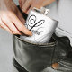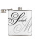 Ein in einem Skript geschriebenes Monogramm mit Vorname und dem letzten ersten in modernen minimalen Farben kontrastierender schwarz, weiß und grau.
