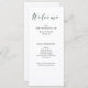 Ce programme de mariage époustouflant présente une calligraphie verte profonde ainsi qu'un texte noir moderne, sur un élégant arrière - plan blanc. Parfait pour un mariage traditionnel et formel avec une touche moderne !