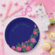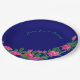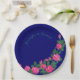Elegante und blumengeschmückte Royal Blue Paper Te Pappteller
