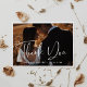 Mit dieser individuell gestaltbaren Fotokarte mit moderner Typografie bedanken Sie sich und bedanken sich für Ihre Anwesenheit und die schönen Geschenke. Fügen Sie einfach Ihr Lieblings-Hochzeitsbild hinzu, ändern Sie die Farben und schreiben Sie Ihre eigene Dankeschön-Nachricht.