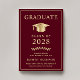 Elegante bordeauxrote Abschluss-Ankündigung mit einem goldenen Graduierungspapier und einfacher moderner Goldtypografie für den Namen des Absolventen, das Jahrgang der Klasse, die Uni oder die Universität, den Abschluss und die Hauptfach- oder Ehrengänge.