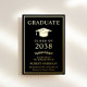 Elegante Ankündigung von schwarzen Uni-Abschlüssen mit Ihrer Wahl von echten Gold, Silber oder Rose Goldfolie, einem klassischen Graduiertencap und dem Namen, dem Klassenjahr, der Schule, dem Abschluss und den Hauptfach- oder Ehrengästen in der modernen Schrift.