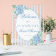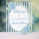Ein Vintag inspiriertes, klassisches und elegantes Hütte-Großtausendjährig-Design mit Viktorianischer englischer Gartenästhetik. Delikate Aquarellblauen Hydrangeas und charmante vergessene Blume sind mit einem geschliffenen, handgezeichnet ovalen Rahmen gegen weiche blaue Preppy Streifen angeordnet.