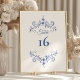 Elegante Vintag Romance Blue Wedding Tischnummer