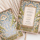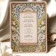 Diese exquisite Hochzeitseinladung besticht durch ein atemberaubendes Jugendstil-Blumendesign, das sich ideal für Paare eignet, die eine zeitlose und romantische Ästhetik suchen. Die Vorderseite zeigt eine verzierte botanische Grenze mit aufwändig gezeichnet Blumenmotiven in sanften Pastelltönen aus Elfenbein, Rot, Salbei und antikem Gold, die die Hochzeitsdetails in einem eleganten Serif-Schriftart umrahmen. Die harmonische Komposition von wirbelnden Weinreben, zarten Blüten und einer raffinierten blauen Kulisse verleiht dem opulenten Charme der Belle Epoque. Die Rückseite der Einladung setzt das Vintage botanische Thema fort und zeigt ein nahtloses Blumenmuster, inspiriert von klassischen Kunst- und Handwerksbildern, die an William Morris' ikonische Werke erinnern. Dieses stilvolle und luxuriöse Hotel eignet sich ideal für Gartenhochzeiten, Vintag inspirierte Feste oder formelle Abend-Empfänge. Pair dies mit passenden RSVP-Karten, Menüs und Dankeschön-Noten für eine zusammenhängende Hochzeitsbriefpapier-Suite.